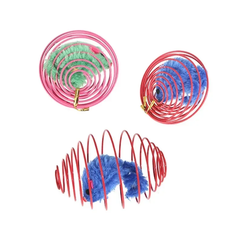 Cat Toy Balls Funny Stretchable Kitten Springs Toys Interactive Caged Rats Rolling Cat Balls Random Color Cat Accessories Pet